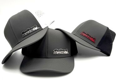 This is a sampling of some hats we have done for ourselves and some clients. We have a variety of hat colors, bill types, and we can customize the patches to meet your needs.